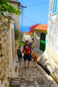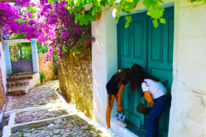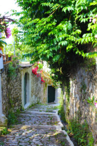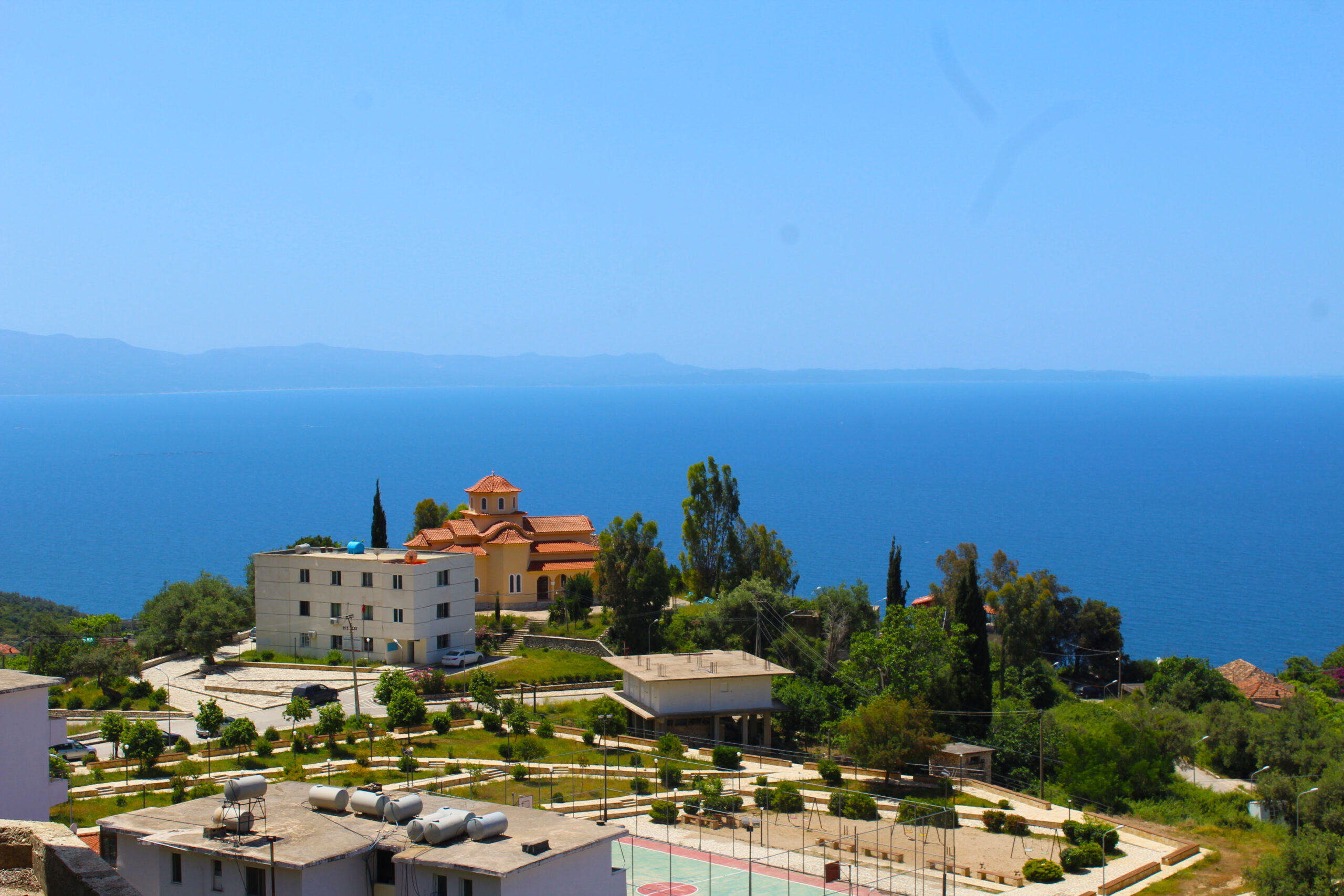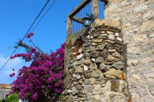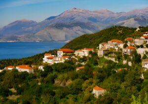 Fshati shtihet në mes të tarracave me agrume në një peizazh plot kontraste mes kaltërsisë së detit Jon dhe gjelbërimit të kodrave përreth.