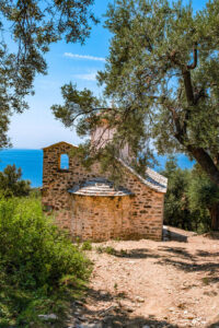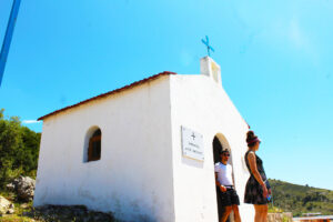 Kisha daton prej vitit 1600 dhe ndodhet në një kodr me pamje nga deti Jon.