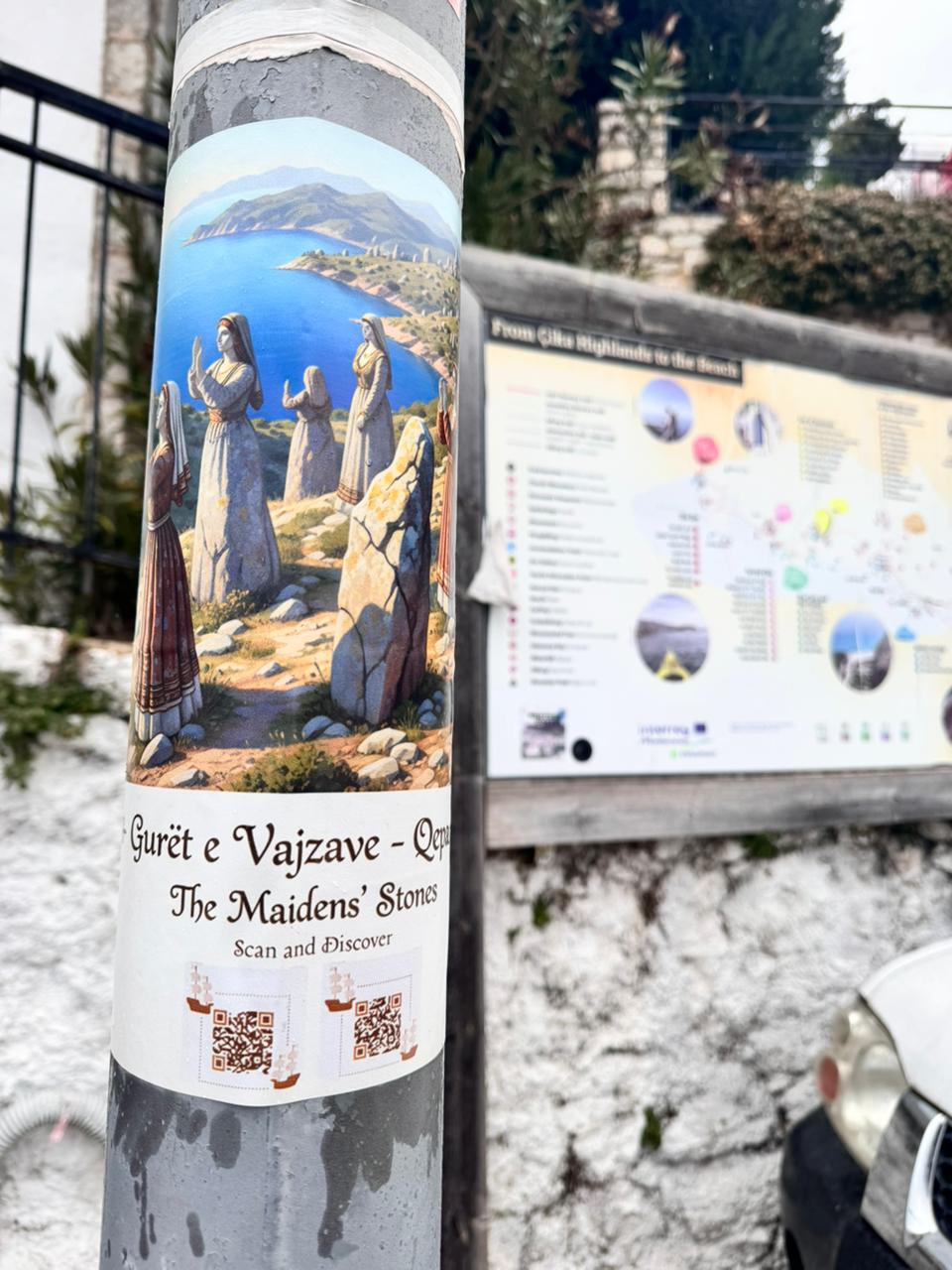 Çdo poster përmban një QR code që, kur skanohet me telefon, çon vizitorin në video dokumentare dygjuhëshe (shqip dhe anglisht), foto dhe përshkrime që tregojnë legjenda, rrëfenja dhe histori lokale. Legjenda dhe gojëdhëna që nuk i keni dëgjuar më parë.